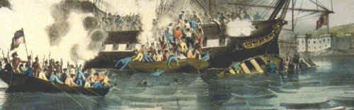 netting on the quarter as pistols and muskets were fired at them at point blank range